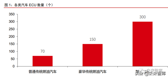 量的维度:单车 MCU 用量从几十到几百颗不等,后续将受益于智能化、电动化。根 据中国市场学会汽车营销专家委员会研究部的数据,普通传统燃油汽车平均单车搭载 ECU 70 个;豪华传统燃油汽车平均单车搭载 ECU 150 个,新增的 MCU 主要用于提升乘驾体验(座椅按摩、中控娱乐)、车身稳定性与安全性等;智能汽车平均单车搭载 ECU 300 个, 新增的 MCU 主要用于自动驾驶相关硬件控制。