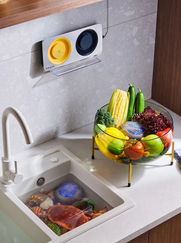 DL001胶囊果蔬净化器非常小巧,可以自行搭配清洗时用的容器,水槽、洗菜盆、甚至是塑料袋都能让它容身,使用容器不受限制。