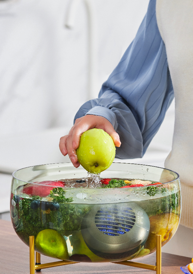这款分类果蔬净化器的无线设计,不受限于容器的大小与放置的位置,无论在厨房水槽、厨房中岛或是客厅餐桌都能为你随时随地净化食物。