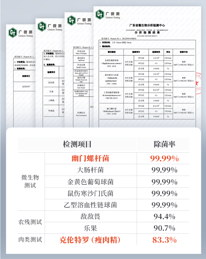 东菱分类果蔬净化器杀菌效果更是杠杠的,幽门螺杆菌去除率更是高达99.99%.