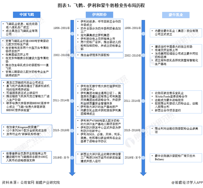 1、伊利VS蒙牛VS飞鹤:奶粉布局历程