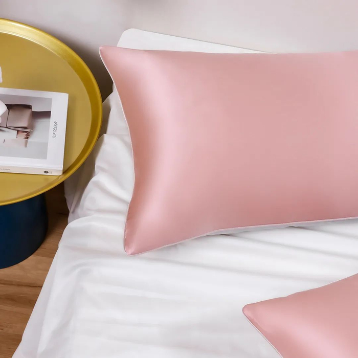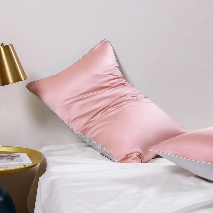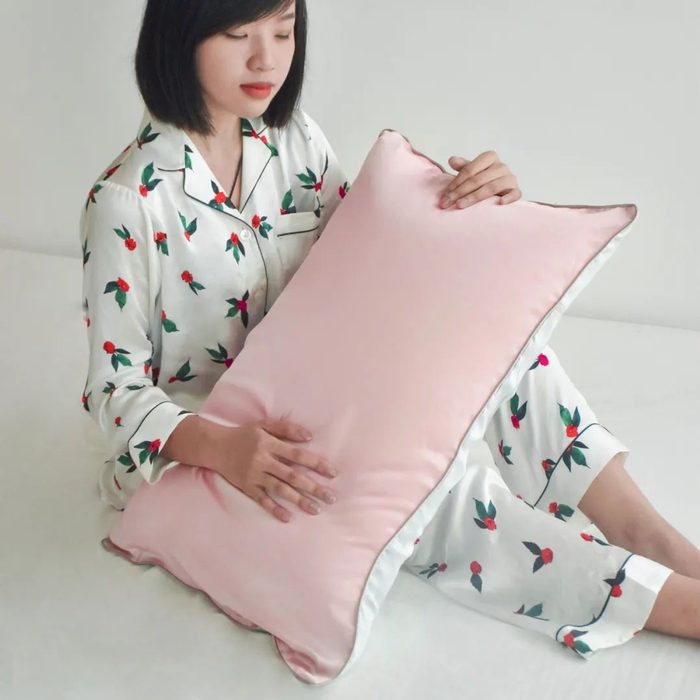 像这款真丝枕套,直接贴肤的一面都是以100%双宫茧桑蚕丝织成,手感柔滑,十分亲肤。