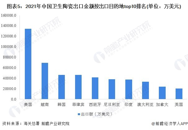 2022年中国卫生陶瓷行业出口市场现状分析 美国是第一大出口目的地 【组图】