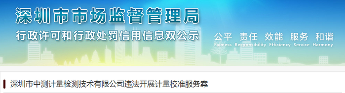 | 处罚名称: | 深圳市中测计量检测技术有限公司违法开展计量校准服务案 |