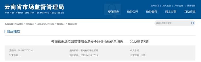中国质量新闻网讯 2022年4月26日,云南省市场监督管理局网站发布食品安全监督抽检信息通告(2022年第7期)。据通告,近期,云南省市场监督管理局完成食品安全监督抽检214批次样品。其中,抽检食糖37批次,全部合格。