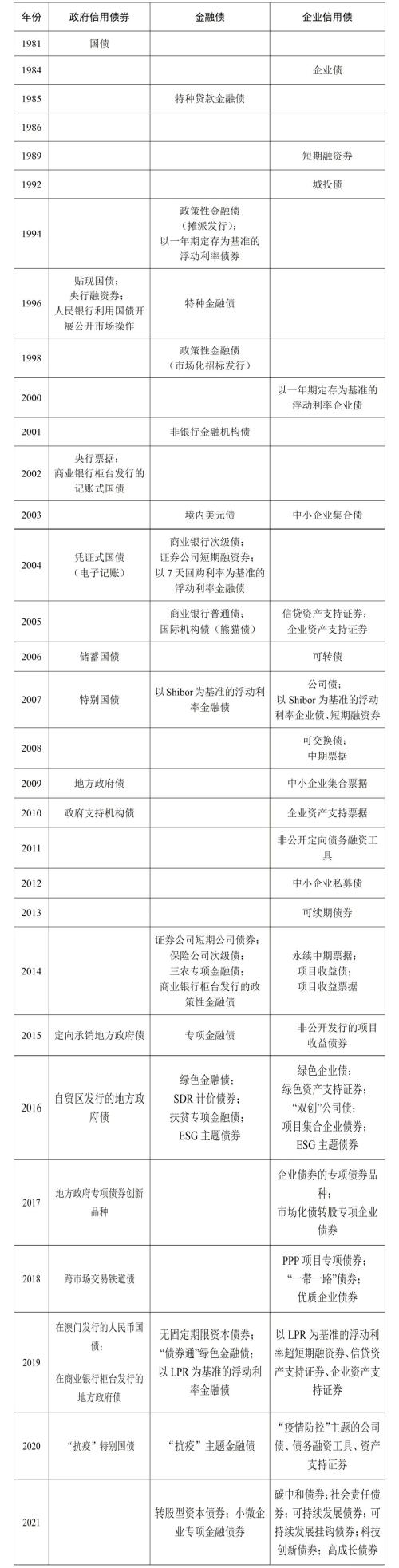 表2-1 债券品种、场所及定价基准的创新演变