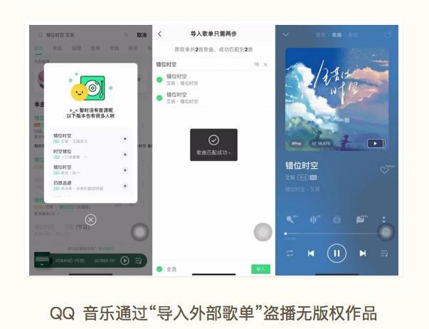 网易云音乐在声明中指出,“腾讯音乐娱乐集团旗下的QQ音乐屡次在未获授权情况下,上架我方热门作品,我方提起维权后,QQ音乐针对性地只在我方日常监测区北京、上海、广州、杭州等地区下架相关作品,但在其他我方监测、维权能力弱的地区仍继续盗播、偷放,蓄意规避我方维权。”据了解,QQ音乐分区域盗播的侵权作品数量巨大且均为网易云音乐爆款歌曲,如《世间美好与你环环相扣》(柏松)、《像我这样的人》(毛不易)、《晚安》(颜人中)等。“针对无授权歌曲,QQ音乐开发复制其平台歌单链接再导入的功能,即可实现原歌单中置灰不能播放歌曲的重新播放和下载。”