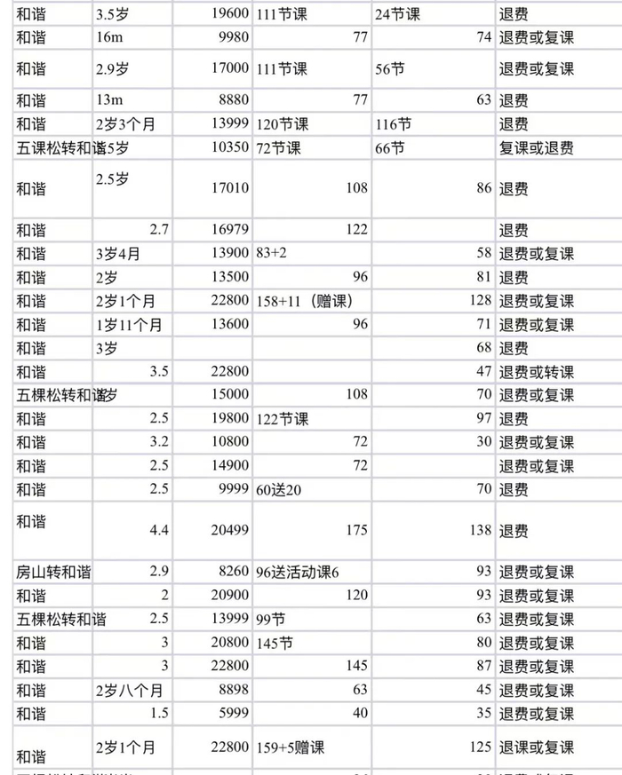 另一种是转到其他合作机构继续上课。记者看到的转课表显示,其他机构提供的大多是适合3岁以上儿童的课程,比如瑜伽、马术、围棋等。沈云觉得这“完全是霸王条款”。她的孩子才1岁多,大部分课都上不了,这也是很多小月龄宝宝家长拒绝转课的原因。