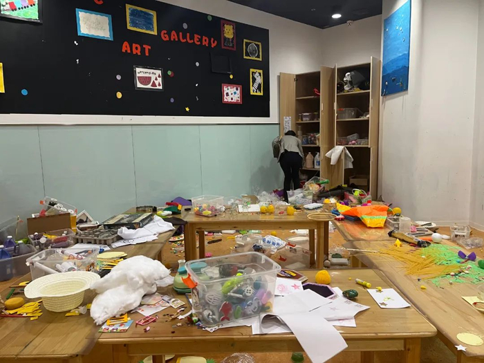 NYC纽约国际儿童俱乐部和谐广场店内一片狼藉