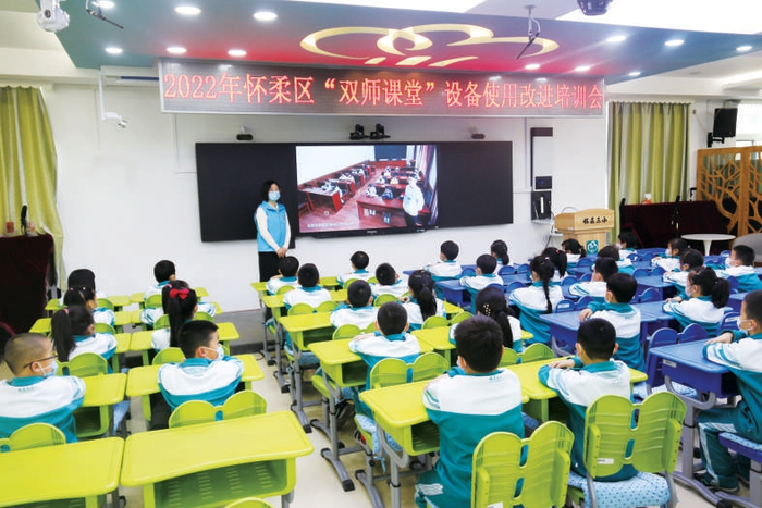 2021年底,建设完成市级名师空中课堂1所,双师课堂26所,可统筹全区名优教师资源,实现城区优质学校与乡村学校备课同步实施、课堂同步互动、教师同步研修、资源同步共享,达到城乡教育一体化发展。随着区内信息化基础设施逐步完善,结合现有硬件设施,怀柔区教育资源公共服务体系初见雏形,现已完成一期建设,平台涵盖区内3所高中、13所初中、13所小学试点校、1所教科研中心。