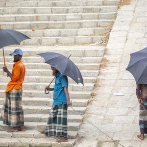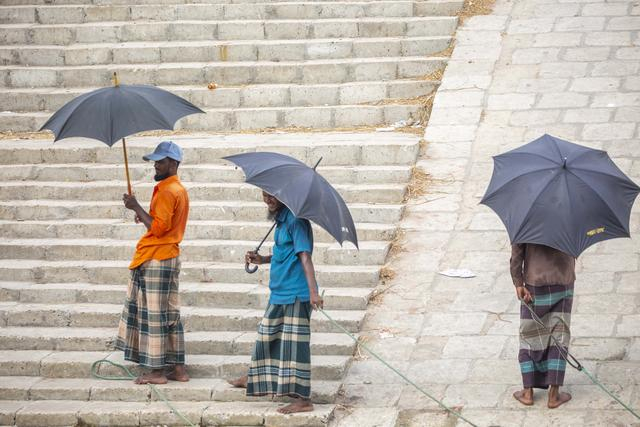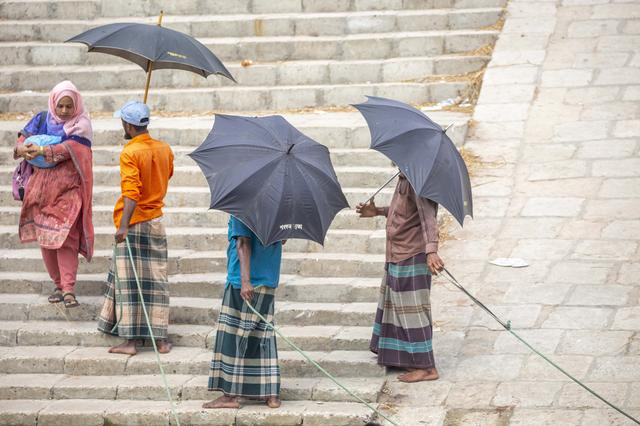 孟加拉国达卡天气渐热 民众撑伞消暑降温