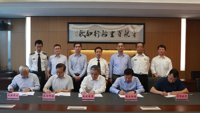 4月26日,南京海事局与江苏南京民用无人驾驶航空试验区主要建设单位南京智慧航空研究院有限公司、中国联合网络通信有限公司南京市分公司、南京长空科技有限公司、江苏南京民用无人机试飞运行基地共同签订五方战略合作协议,共同推进长江南京段海事无人机应用工作。