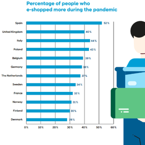 此前postnord发布的数据显示,2021年欧洲消费者在线购物数量达2.97亿,而根据被调查消费者们提供的预估数据,2021年欧洲消费者在线消费额达到4650亿欧元。2021年对11个欧洲国家消费者的调研结果显示,“线上购物变得更多”的消费者占比达到30%以上。