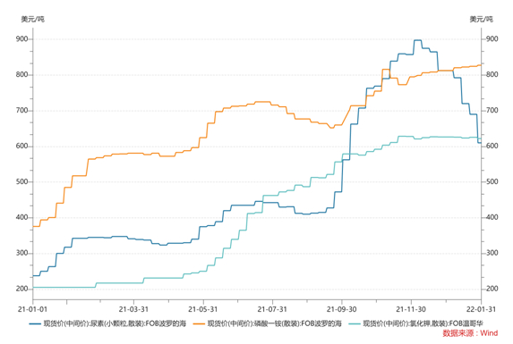 此前,因全球海运费用上涨、海外天然气价格高位等因素,全球化肥价格已上涨一波。Wind数据显示,去年1月至今年1月末,国际尿素(FOB波罗的海)价格上涨157%,磷酸一铵(FOB波罗的海)价格上涨120%,而氯化钾(FOB温哥华)价格大涨203%。