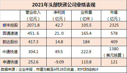 至此,顺丰控股依旧稳坐快递行业一哥地位,而圆通速递与韵达股份的亚军之争,也以圆通速递获胜暂时落下帷幕。