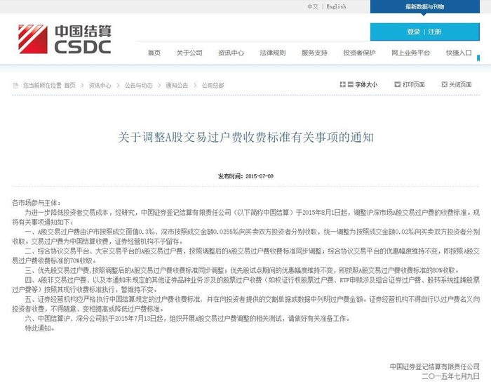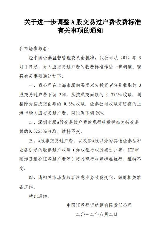 利好又至,史上第4次股票交易过户费调整来了!中国结算:明日起过户费总体下调50%