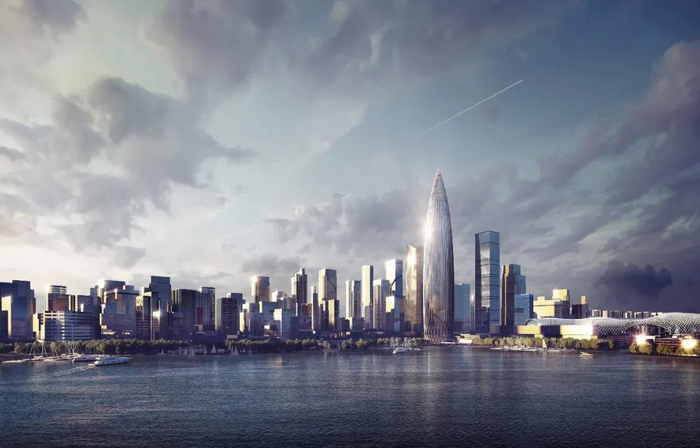 在建筑材质的推敲上,以金属线角、玻璃、铝板等多维材质,打造挺拔、现代的建筑效果;建筑立面,从飞翔海鸥中汲取灵感,自下而上至塔冠,尽显海鸥展翅的轻盈之态;建筑设计,以海洋冷色系为基调,呈现海天一色的效果,至简至轻,至淡至泊。