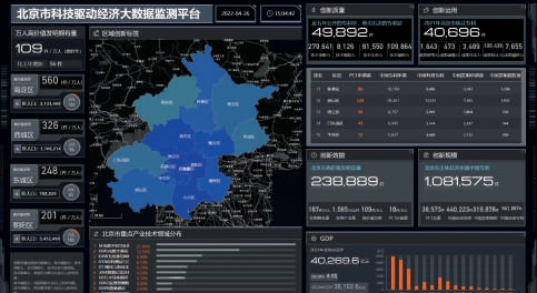 在中关村知识产权运营公共服务平台IP Online上,一键点击“北京市科技驱动经济大数据监测”,中关村“一区十六园”的科创实力数据就动态化、可视化跃然眼前。