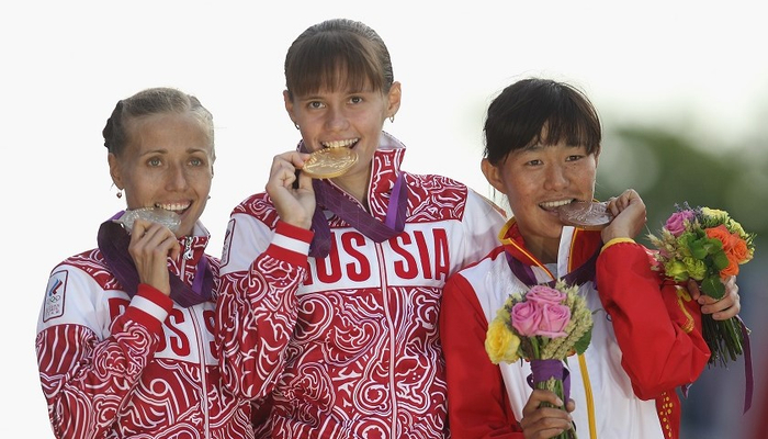 2012年伦敦奥运会女子20公里竞走颁奖仪式。