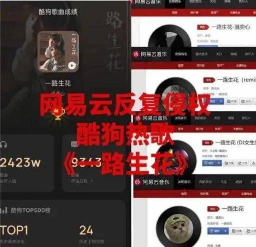 根据陈默所发图片显示,网易云音乐在歌手周杰伦音乐版权到期后,仍涉嫌违规打包向公众销售周杰伦的全曲库,在经历了为期一年半的审理后,被判侵权、罚没收入和赔偿相关损失85万元。此外,网易云音乐平台目前依然能搜索到不同形式的山寨版热门歌曲。以近期的大热歌曲《一路生花》为例,网易云音乐平台能搜到多个山寨版本,涉嫌侵权。