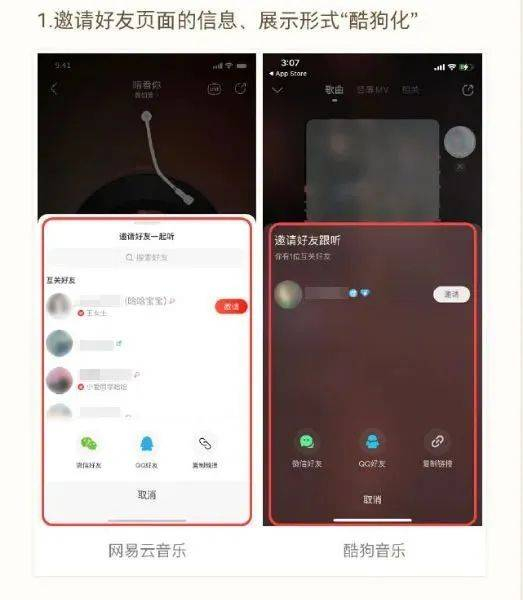 另外,针对“抄袭产品和创新机制”等指控,网易云音乐则表示,QQ音乐、酷狗音乐、酷我音乐抄袭网易云音乐黑胶播放页设计;酷狗音乐、QQ音乐抄袭网易云音乐“一起听”功能;酷狗音乐抄袭网易云音乐“云贝推歌”功能设定及界面设计。