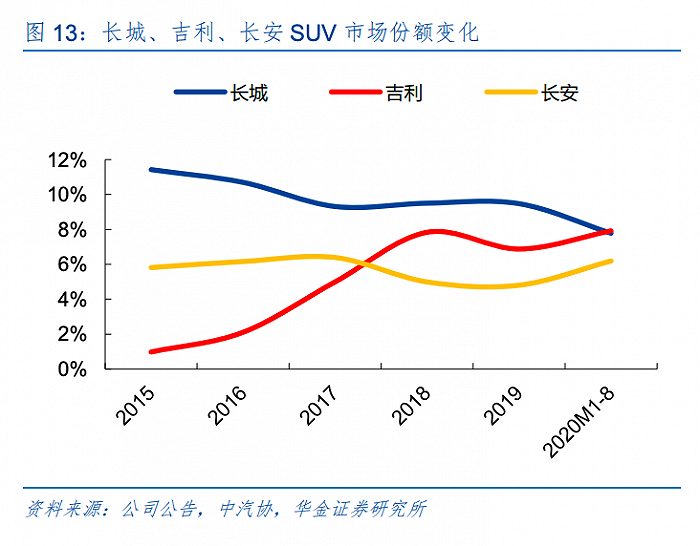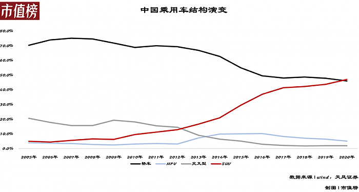 第二个层面,2008年以后,中国汽车行业SUV市场快速扩容,长城成了最大的受益者,但也陷入路径依赖。