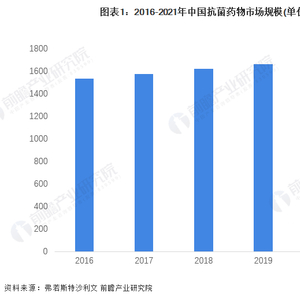 2016-2019年,中国抗菌药物市场规模整体呈缓缓增长态势,但在2020年,出现明显的下降,其市场规模将为1244亿元,这与中国民众积极配合防疫措施:佩戴口罩使得细菌感染的疾病减少,故而抗菌药的销售规模也有所下降。2021年,中国抗菌药物市场规模有些许回升。