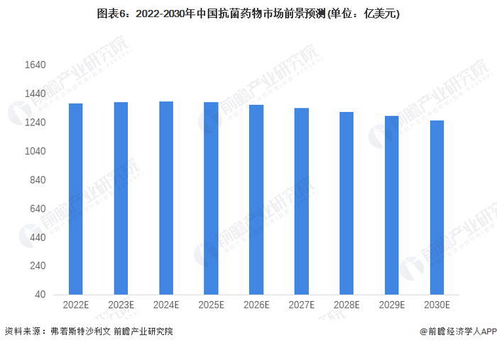 到2030年中国抗菌药物市场规模呈先上升再下降趋势