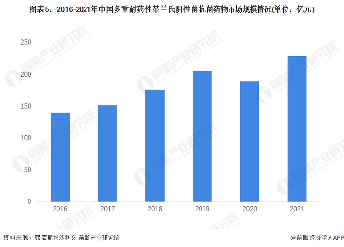 2016-2019年,中国治疗多重耐药性革兰氏阳性菌抗菌药物总治疗天数呈逐年增长态势。根据沙利文的初步统计,2021年,中国多重耐药性革兰氏阳性菌抗菌药物总治疗天数突破1200万天。