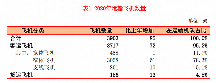 《2020年民航行业发展统计公报》显示,截至2020年底,民航全行业运输飞机期末在册架数3903架,其中客运飞机3717架、货运飞机186架,货机占比不足5%(2021年货机数量有所增长,但2021年公报尚未发布)。