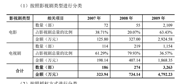 2007年乐视网成立的时候,还是盗版横行的年代,真正去购买影视作品版权的平台并不多,因此版权价格也非常低。但也是在这个阶段,乐视看到了未来的机遇,开始押注版权。在2007年至2009年间较低的价格采购了一批电影、电视剧,据统计三年采购平均价格分别为1.74万元/部、2.68万元/部、1.47万元/部,总共采购了3723部影视版权。