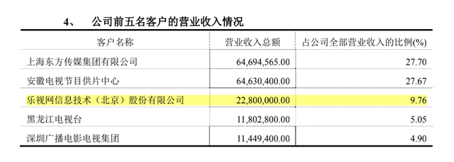 东阳市花儿影视文化有限公司2012年前五名客户的营业收入情况。