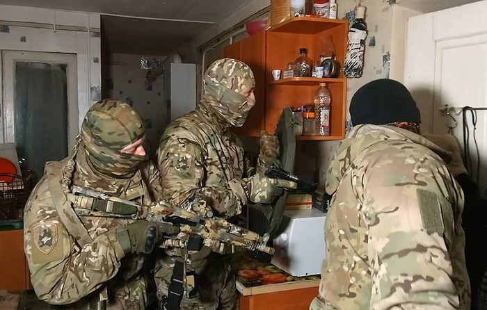 一辆灰色的面包车悄悄驶进一个居民区,在一幢公寓楼附近停了下来。6个全副武装的俄罗斯联邦安全局(FSB)探员从车里走出来。他们手持AK-74M自动步枪,从后备箱中取出“折扇”6型盾牌和强光手电,安静且迅速地摸进了公寓楼。