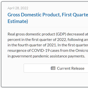 (观察者网 讯)当地时间4月28日,美国商务部经济分析局公布美国2022年第一季度国内生产总值(预估)数据,美国2022年第一季度实际国内生产总值(GDP)按年率计算下降1.4%,预期为增长1.1%,2021年第四季度增长6.9%。