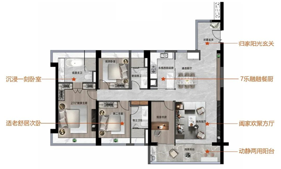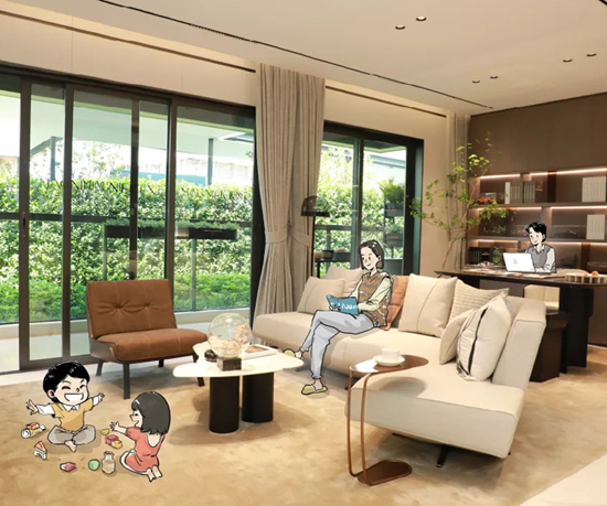 越秀地产这一标准化户型模块中,每个空间场景围绕“人-关系”来设计。