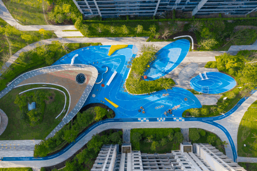 越秀地产的项目,就为各年龄段的人群设置了丰富的户外活动场景。有面向儿童的主题乐园,年轻人的健身运动空间,老年人的康体空间、闲坐及散步空间等。就连宠物都有自己的专属乐园。