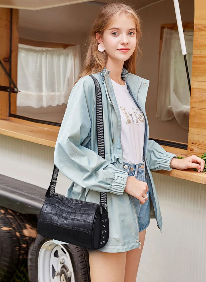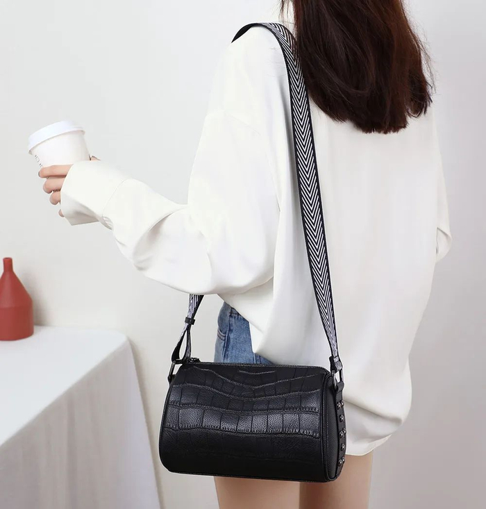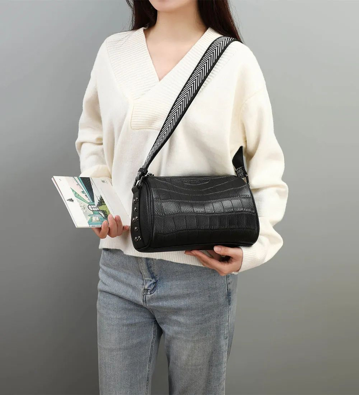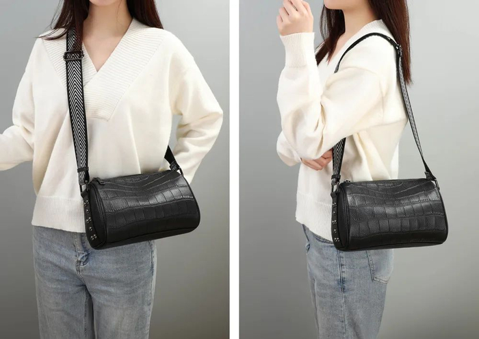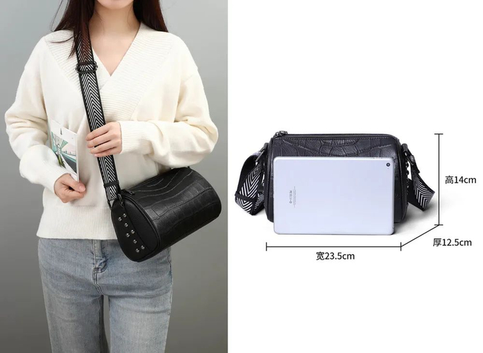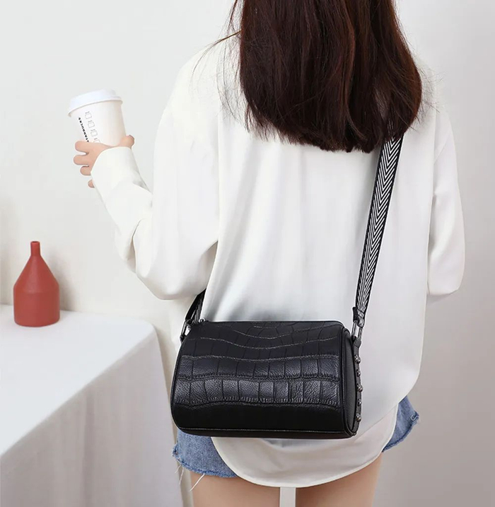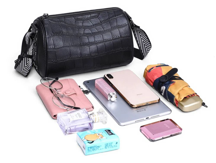 轻便百搭 牛皮单肩圆桶包