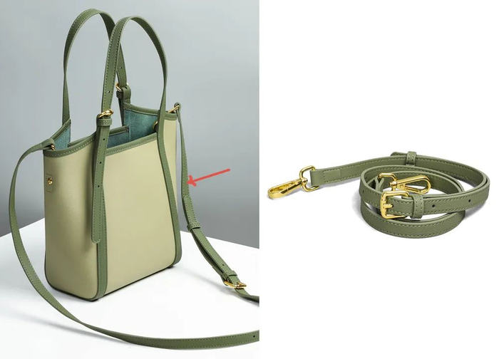 它还配有一条可拆卸的长肩带,约118cm,可调节长短。