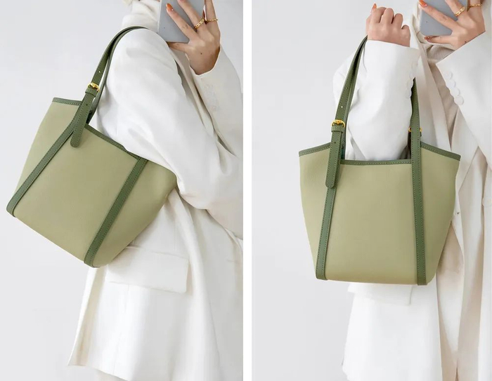 这款托特包,轻盈、能装又好搭,利用率高,上班、约会、聚餐、逛街都能背。