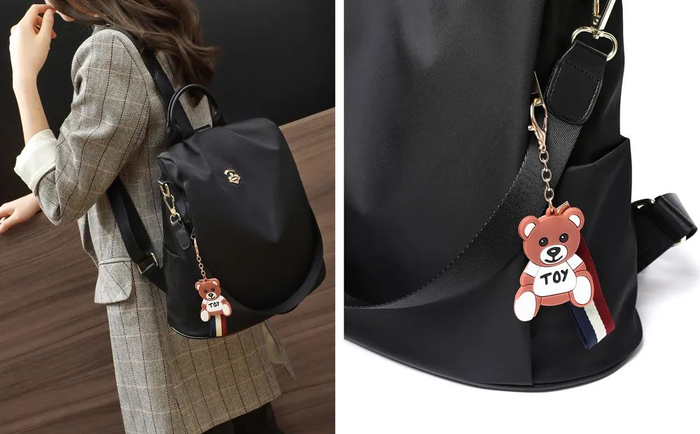 它还配有一个卡通小熊挂件,活泼可爱,可拆卸的设计,挂在别的包包上也好看。