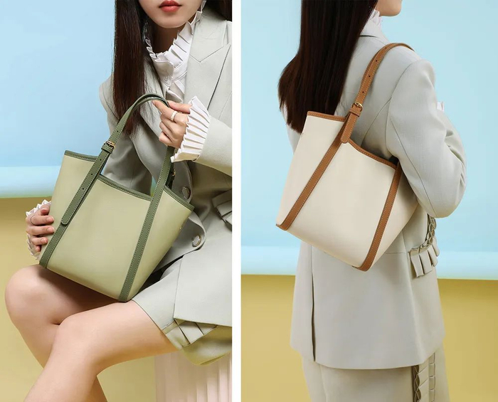 时髦又实用 牛皮撞色托特包