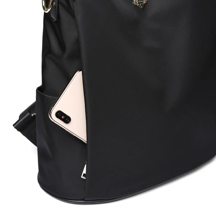 背包正面点缀了一个皇冠图案的金属装饰,打破了沉闷感,更添精致。