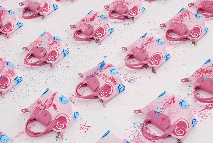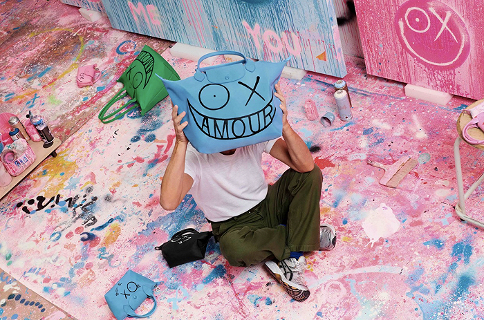 此外,该系列还限量提供200个手工定制手袋,André Saraiva用蓝色和粉红色油漆喷溅而成随机图案,翻盖则处饰有白色墨水André设计师本人的签名。目前André Saraiva x Longchamp合作系列包袋已于Longchamp官网发售,进入官网页面,你会惊喜发现跳跃着的Mr. A LOVE,点击光标也化身泼墨颜料瓶,可以感受到艺术家与大众互动的乐趣,且充满艺术气息,感兴趣的朋友可去网站一探究竟。