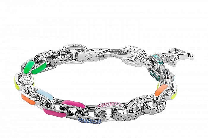 男装艺术总监Virgil Abloh自加入路易威登以来,不断为时尚首饰的设计注入创造力与精湛工艺,筑就LV Paradise系列。此次全新系列包含链条手链和项链,经Virgil在不同场合多次诠释。本季新品以趣味链条相连接,链条上镂刻标志性Monogram图案,饰以水晶玻璃或彩色珐琅,缀以LV吊坠,打造出独具匠心的项链及手链。