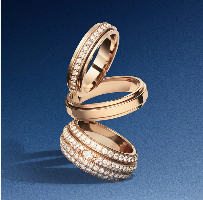 该系列戒指同样以白金/玫瑰金材质打造,双环共绕,旋动不息,互不相束却又彼此交缠,以碎钻排布,或以单颗美钻简约装饰,尽显圆弧的高雅气质。玫瑰金吊坠闪耀着上百颗美钻,它在玫瑰金链上下滑动,化作或长或短、或对称或不对称地优雅点缀颈间,玫瑰金圆环并排旋转,而半月式镶嵌圆形美钻则在中央散发动人光彩。