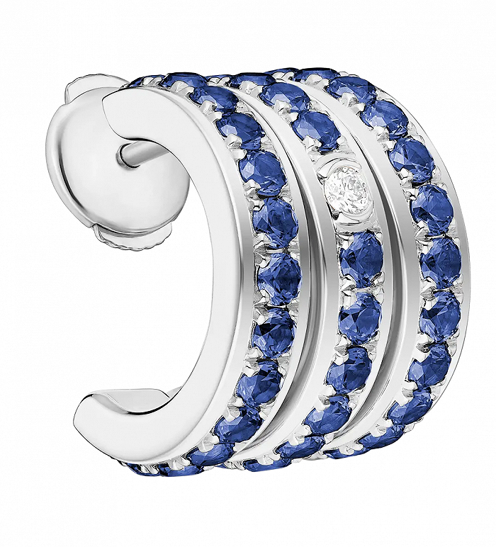 三排镶钻耳环以蓝宝石或祖母绿勾勒出这款耳环的迷人姿态,中央同样饰以一颗标志性镶嵌美钻,延续此系列珠宝作品的迷人风格。或成对佩戴,或单独佩戴,亦或搭配其他款式Possession耳环,让每一天都与众不同。