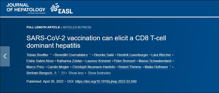 有关说法援引了一份发布在专业期刊《肝病学杂志》(Journal of Hepatology)上的论文。该论文在2022年3月31日定稿,发布于4月20日。