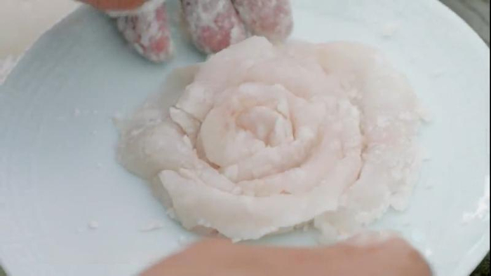 “金齑( jī )玉脍”这道菜的名字听起来富贵逼人,实际上类似于现在日料爱好者常吃的生鱼片配蘸料。北魏贾思勰所著《齐民要术》中,已有对同类菜肴的记录。“齑”的意思是捣碎的姜、蒜、韭菜等,“金齑”则是由蒜、姜、盐、白梅、桔皮、熟栗子肉和粳米饭七种配料捣碎制成。