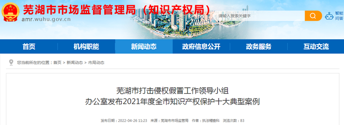 安徽省芜湖市发布2021年度知识产权保护十大典型案例
