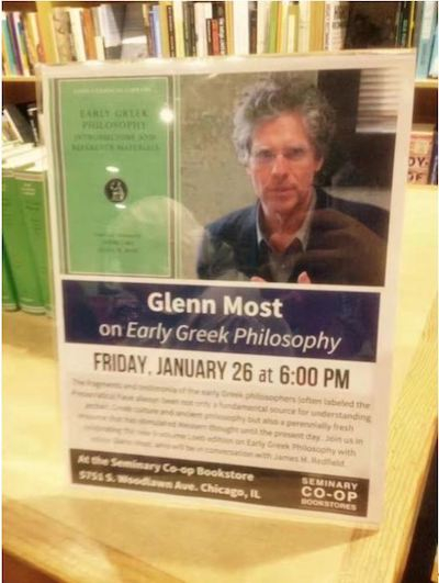 我第一次接触到格兰·莫斯特(Glenn Most)教授是在2018年1月26日晚上,在芝加哥大学的合作书店(Co-op Seminary Bookstores)的一场新书活动上——格兰·莫斯特与安德列·拉克斯(André Laks)合作编译的洛布多卷本《早期希腊哲学》(Early Greek Philosophy)——他与芝大已退休的古典学家詹姆斯·雷德菲尔德(James Redfield)就早期希腊哲学问题进行对话。在此之前的白天,芝大的弗兰克人文研究所(Franke Institute for the Humanities)也举办了关于早期希腊哲学的会议。在合作书店举办的对话里,雷德菲尔德说得并不算多,莫斯特则侃侃而谈,对学术史问题如数家珍。其中,让我印象最深的两处。一是莫斯特有非常全球化的视野,他特别提了,由于一些早期希腊哲学残篇只以叙利亚文和阿拉伯文翻译形式保留下来,莫斯特计划用叙利亚/阿拉伯文-英文对照的形式出版,但这一计划遭到洛布丛书主编反对。因为洛布从来没有处理过希腊、拉丁以外的文献,主编认为遇到这些残篇,只需英语翻译,原文处空白;在莫斯特的强烈要求下,主编最终答应将叙利亚和阿拉伯原文录入。二是在问答环节,有芝大的老师提问,“前苏格拉底哲学”这一概念因为带有强烈目的论色彩而被弃用,改为“早期希腊哲学”,是否类似现在圣经研究里都不喜欢“旧约”而用“希伯来圣经”这一概念。莫斯特从古典学和圣经学两方面出发,对各自问题脉络进行了梳理,认为二者并不一样。时间过去久了,我已经忘记莫斯特给的具体理由是什么,但让我印象深刻的是,在和莫斯特的互动中,那位老师看上去更像是一位学生,而莫斯特像是教授中的教授。四年前的这场讲座,仍是我目前听到的所有讲座里(特别疫情后,得线上学术活动便利,听了不少中国及欧美各大学的讲座)最受震撼的一场,莫斯特在我心中的印象也全由此来。